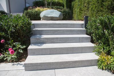 Concrete steps for back or side entrances offer functionality and durability for less visible but highly used access points. Professional installation guarantees they withstand heavy use and weather conditions. Designs can be simple or detailed to suit specific needs.